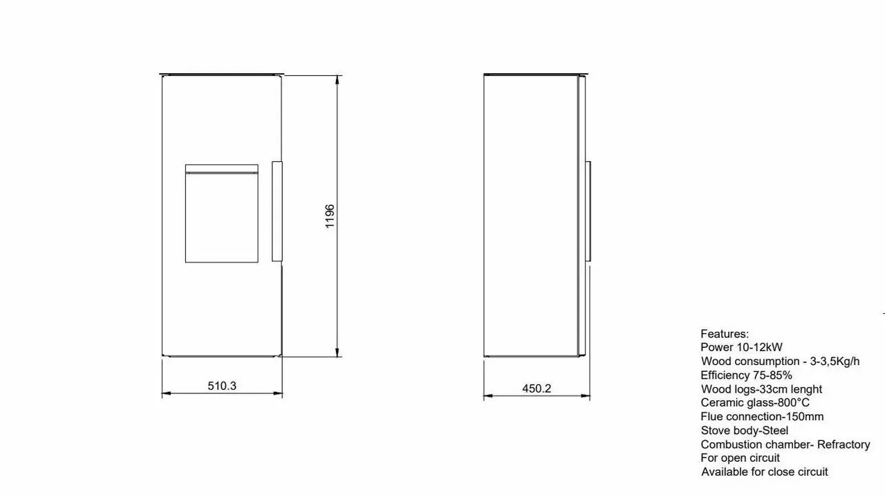 📌 Подходит для установки у стены и работы в стандартных жилых условиях, создавая тёплую атмосферу в доме или на даче.