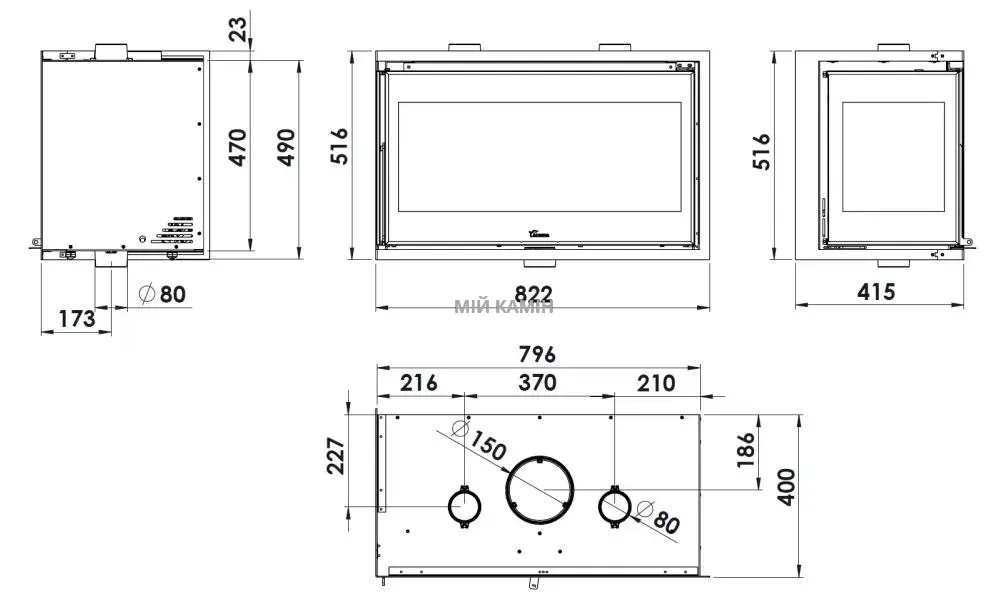 🔧 Диаметр подключения дымохода: 150 мм