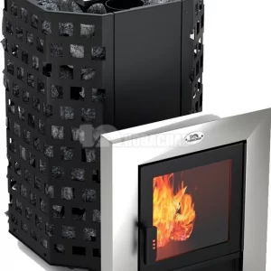 Піч-кам’янка Новаслав Гейзер ПКС-04 С3 з виносом панорамним склом 310×310 мм та кожухом з нержавіючої сталі
