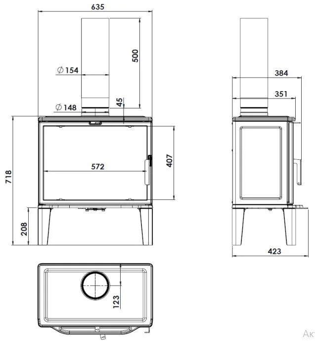 • Діаметр підключення димоходу: 150 мм