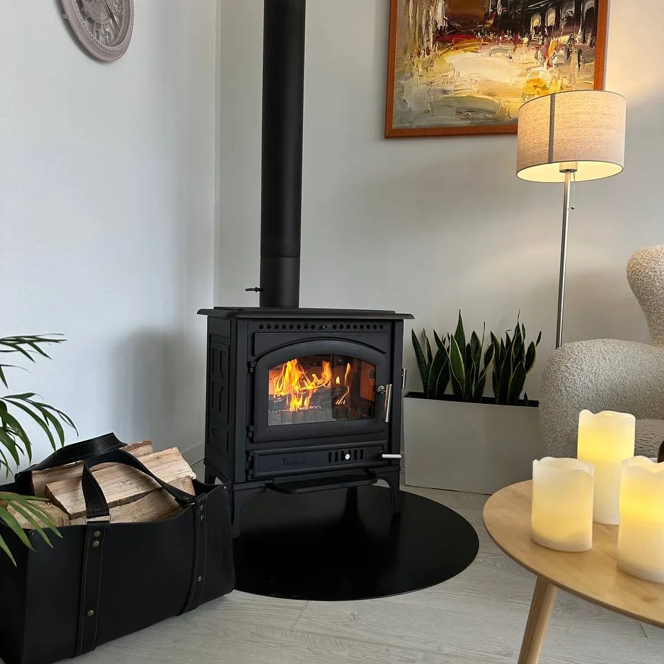 Піч оснащена системою «чисте скло» 🪟, яка довше зберігає прозорість дверцят. Камера згоряння дублірована вермікулітом, що підвищує ефективність горіння та економію дров 🌿.