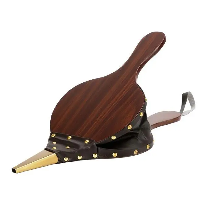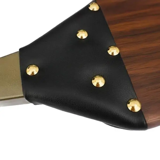 корпус під дерево, металева насадка золотого кольору та декоративні заклепки.