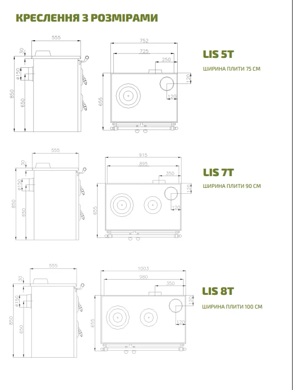 - Доступна у ширинах: 75 см, 90 см, 100 см (моделі 5T, 7T, 8T)