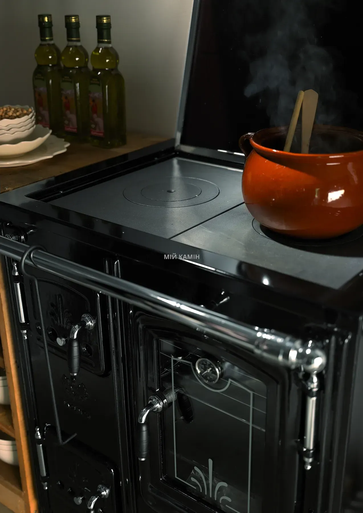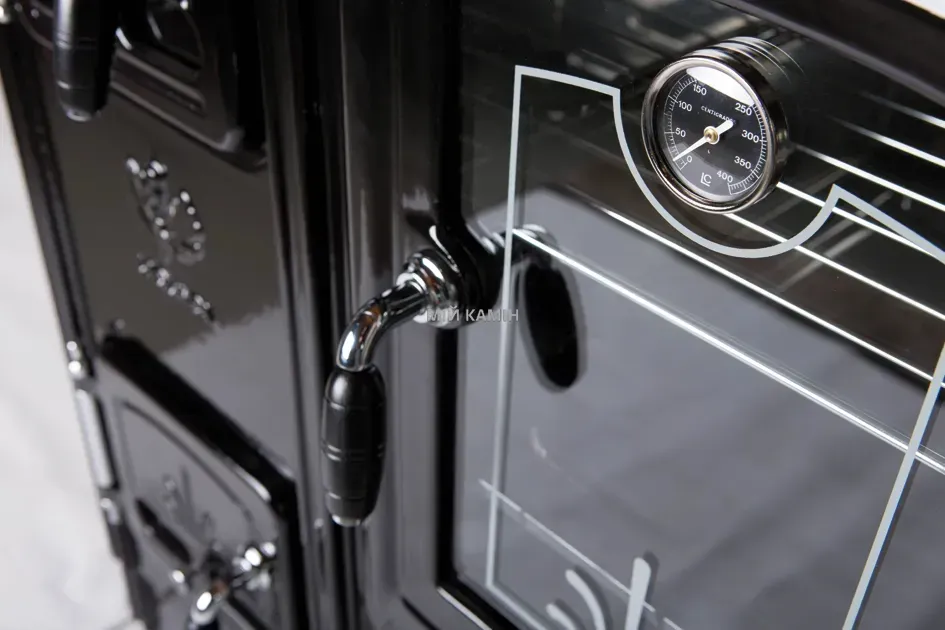 Може бути вбудованою або окремостоячою. Ширина плити – 90 см. Хромована фурнітура, скляні дверцята духовки, духовка з нержавіючої сталі. Варильна поверхня – чавунна або склокерамічна. Стандартна висота для меблів – 85 см. «Холодні ручки» з натуральної деревини. Вбудований термометр. 🌿
