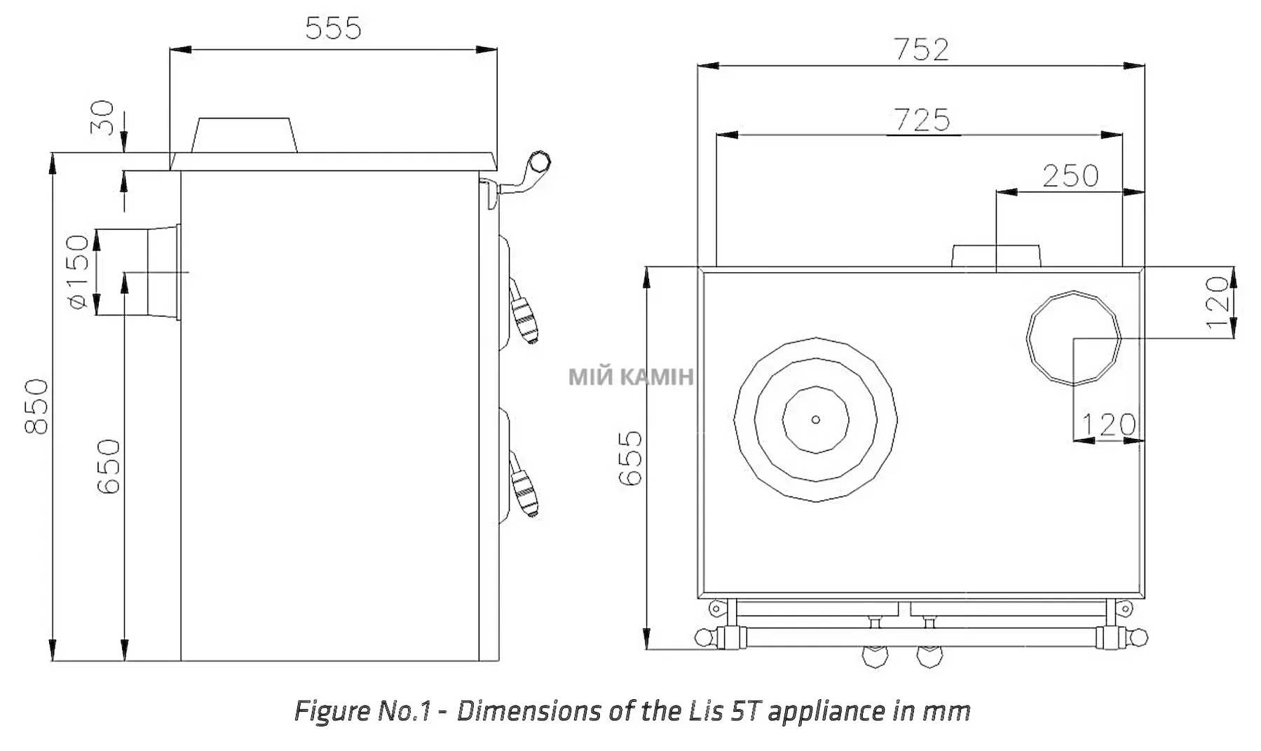 Діаметр підключення димаря: 150 мм