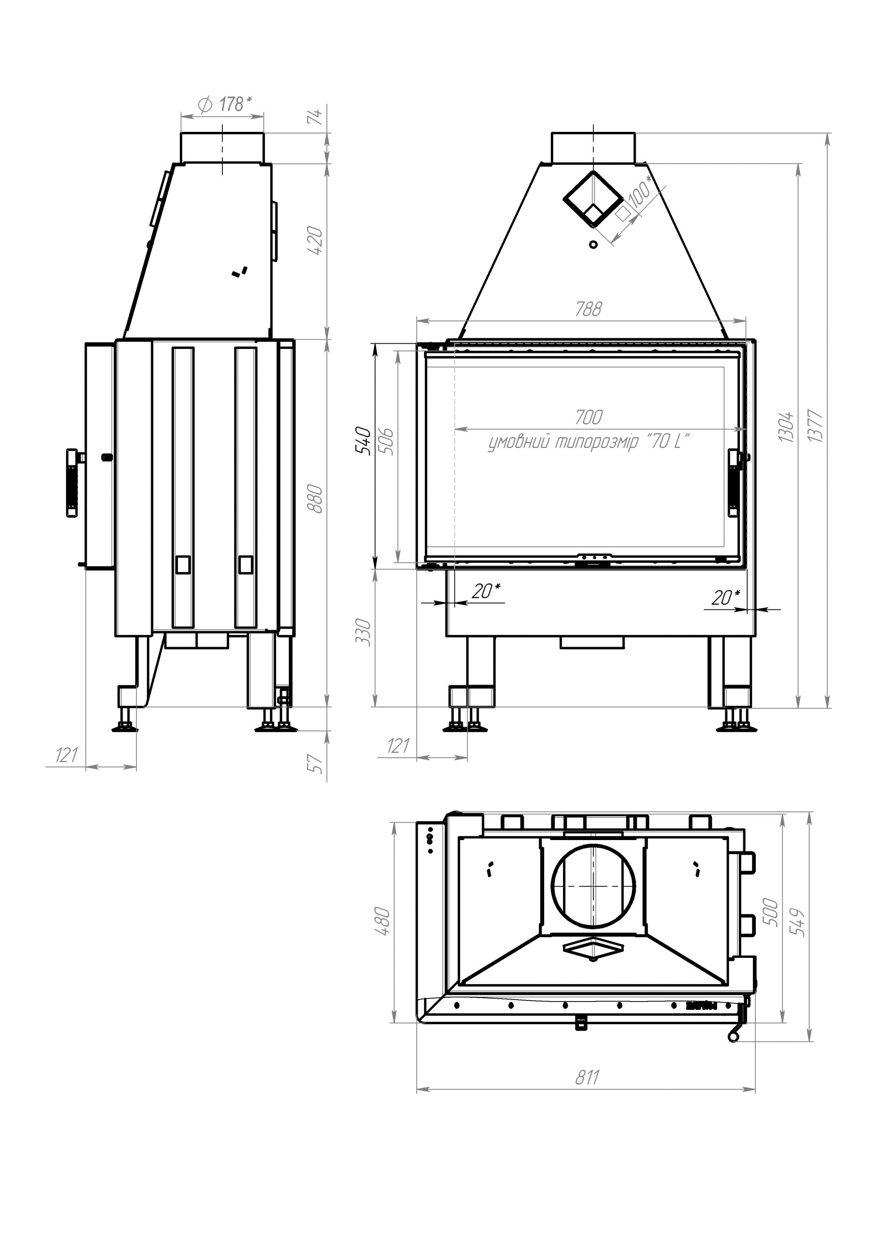 Камінна топка M-FIRE 70 (790/540) кутова ліва (15kW)