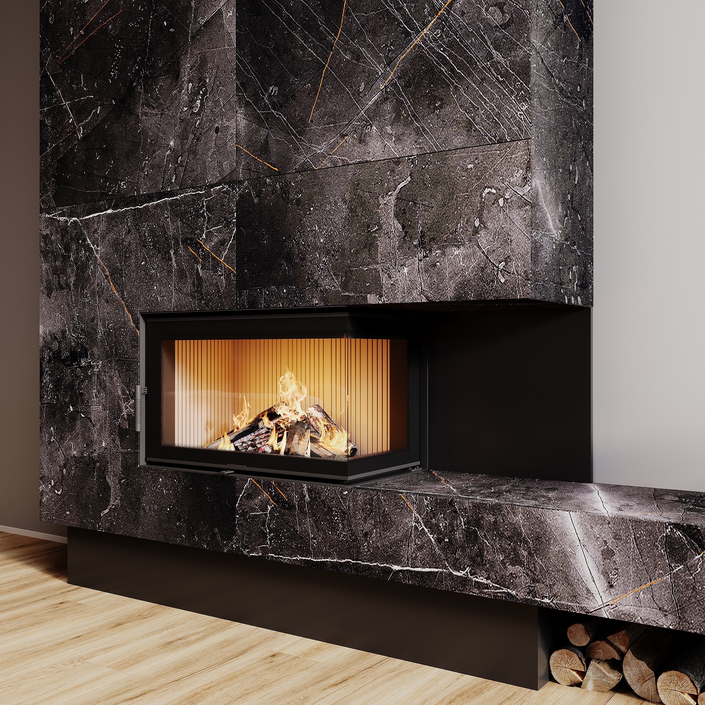 Камінна топка M-FIRE 80 кутова права (17kW) – потужне опалення та стильний дизайн
