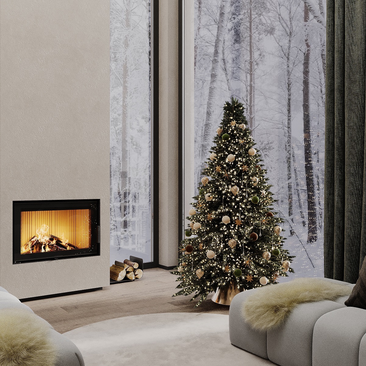 Велике пряме жаростійке скло створює ефект панорамного полум’я, роблячи камін справжньою окрасою інтер’єру і дозволяючи насолоджуватися вогнем без потемніння скла.