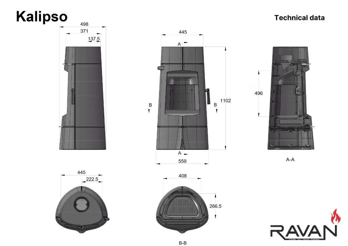 Піч-камін Ravan Kalipso 14 кВт — це поєднання високої продуктивності та ефектного дизайну. Модель створена для просторих віталень, котеджів і будинків із високими стелями, де потрібне потужне та стабільне джерело тепла. 🏡