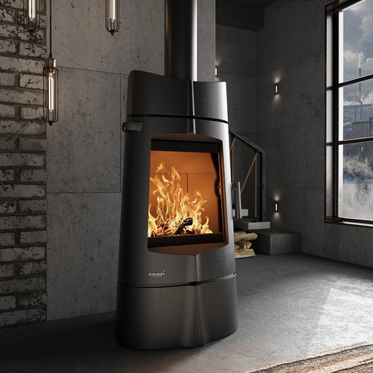 Велике вертикальне скло створює ефект справжнього каміна та підсилює візуальне сприйняття полум’я. Конструкція забезпечує рівномірну тепловіддачу без перегріву. Масивний корпус довго зберігає накопичене тепло навіть після завершення горіння. 🔥