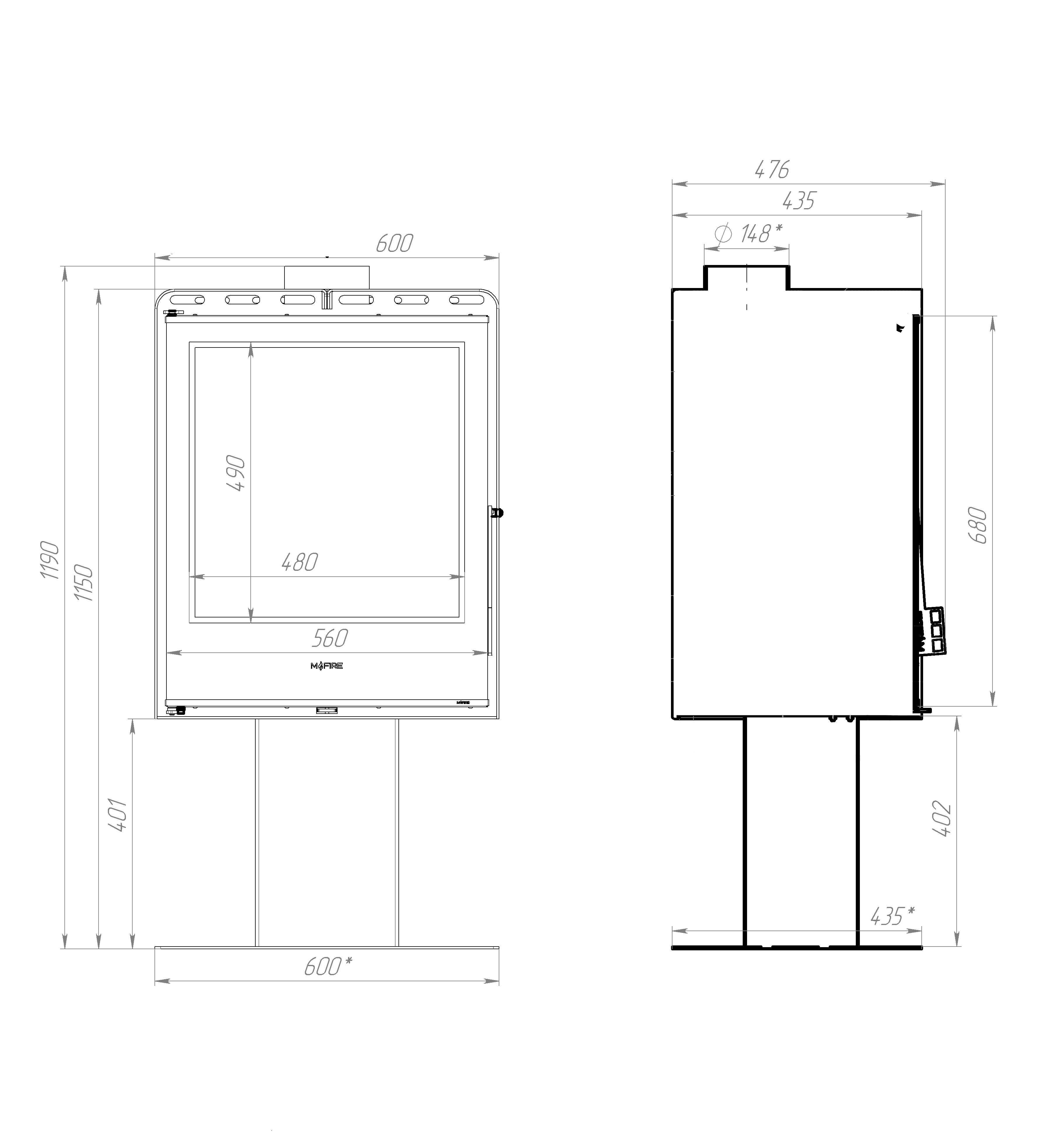| Матеріал камери згоряння | Шамотна плита 40 мм |
