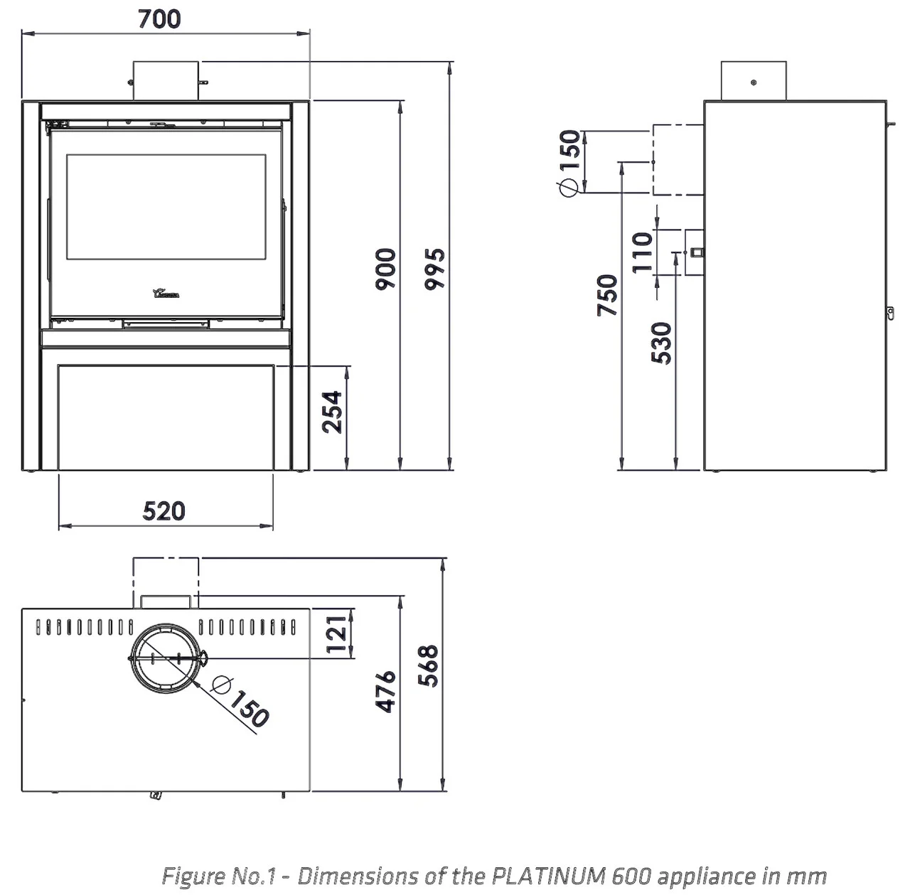 Діаметр підключення димаря: 150 мм