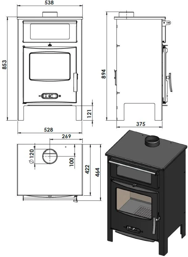 Діаметр підключення димоходу: 120 мм
