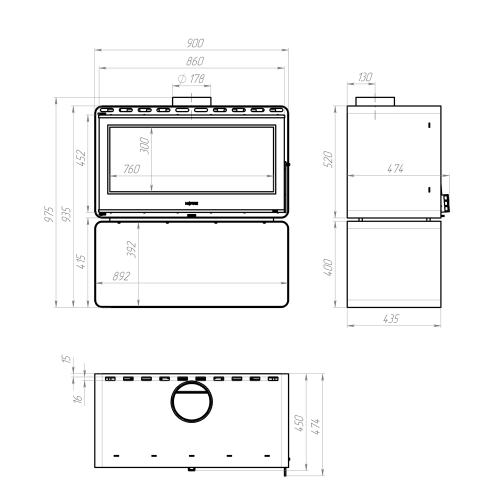 M-Fire Rodos — це найбільша піч в асортименті M-Fire. Ширина 900 мм забезпечує максимальний огляд полум’я та високу теплову потужність, що робить модель ідеальною для просторих приміщень.